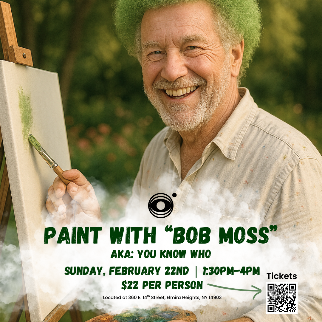 Come hang out with us and create some happy accidents with ya boy “Bob Moss”. Cover only the cost of materials and you and your friends can have a fun and unique paint and sip experience.